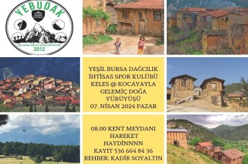 Detaylar Etkinlik sahibi: Yeşil Bursa Dağcılık Spor Kulübü Derneği Süre: 9 saat Haydinnnnnn Gidiyoruz Keles - Kocayayla - Gelemiç Doğa Yürüyüşü muhteşem bir parkur sizleri bekliyor... HAYDİ GÜZEL BİR YÜRÜYÜŞE VARMISINIZ. O ZAMAN HEMEN ARAYIP YERİNİZİ AYIRTINIZ............